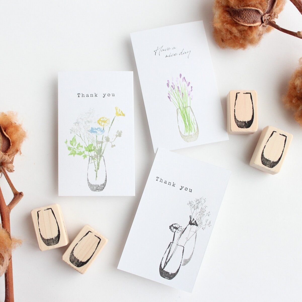 You can use these stamps in combination with various other stamps to create gorgeous designs for plain envelopes, wrapping paper, and message cards.