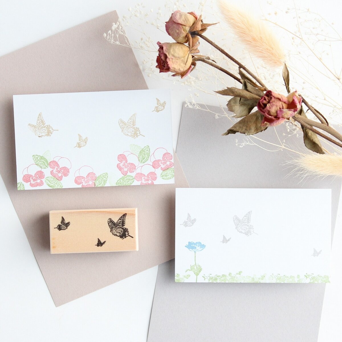 You can use these stamps in combination with various other stamps to create gorgeous designs for plain envelopes, wrapping paper, and message cards.