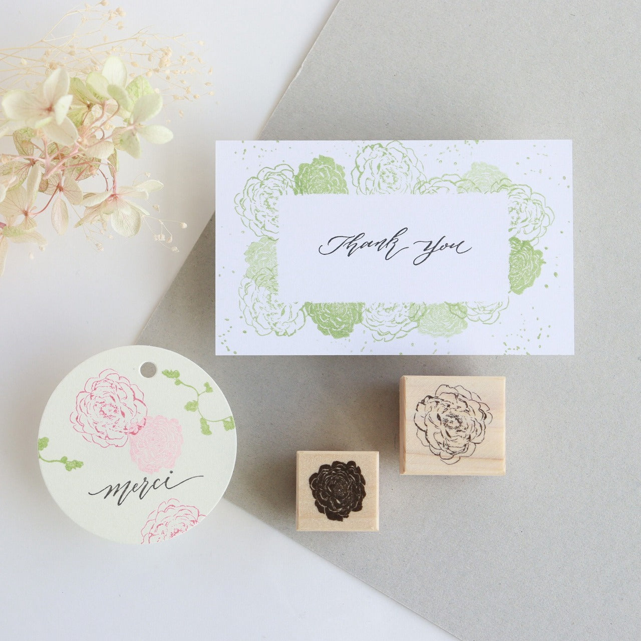 This is a rubber stamp "set of peonies" by always smile... , a Japanese stamp artist who produces stamps of plants, antique goods, and interior decorations.