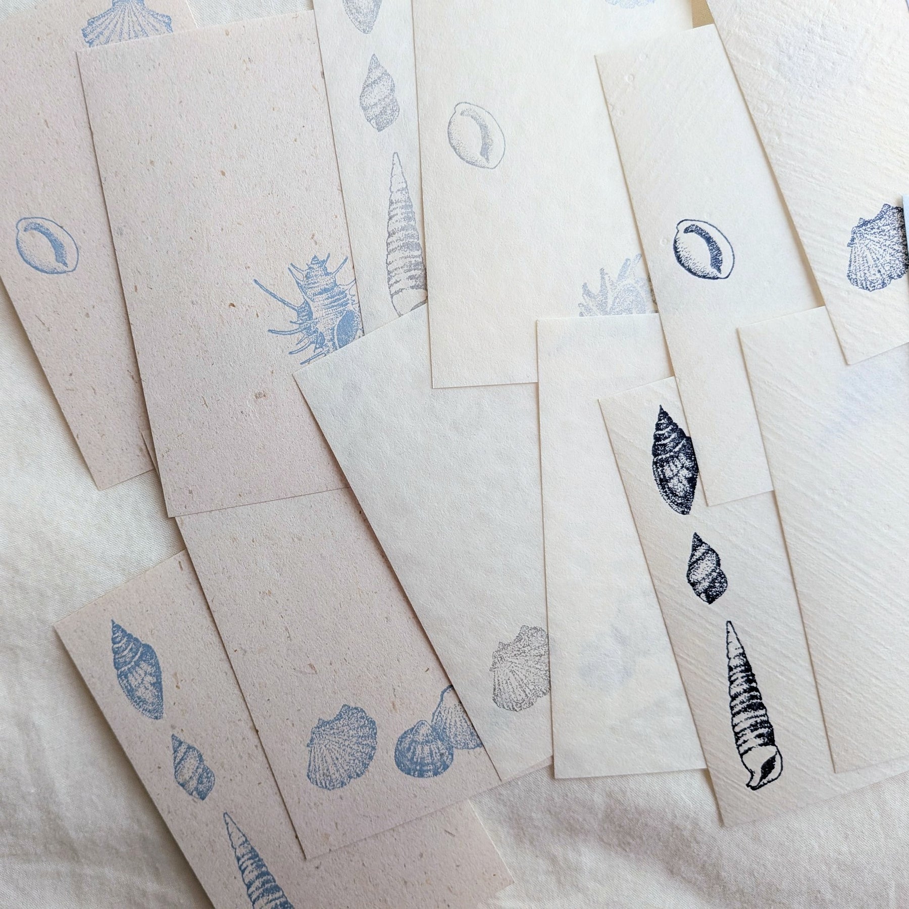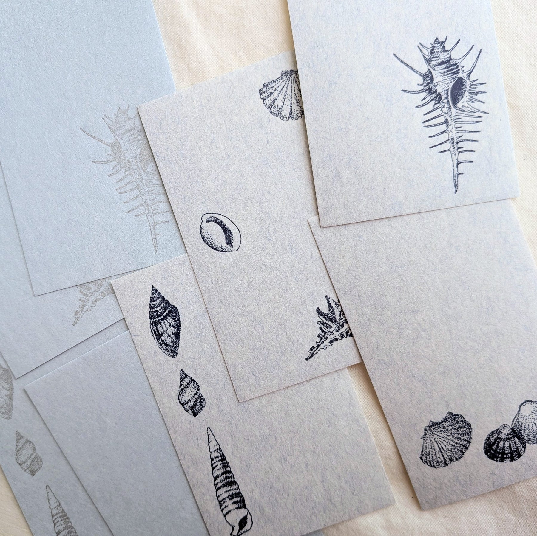 This washi memo set is printed with letterpress on Mino washi and decorated with a seashell motif, then carefully placed in a small box.