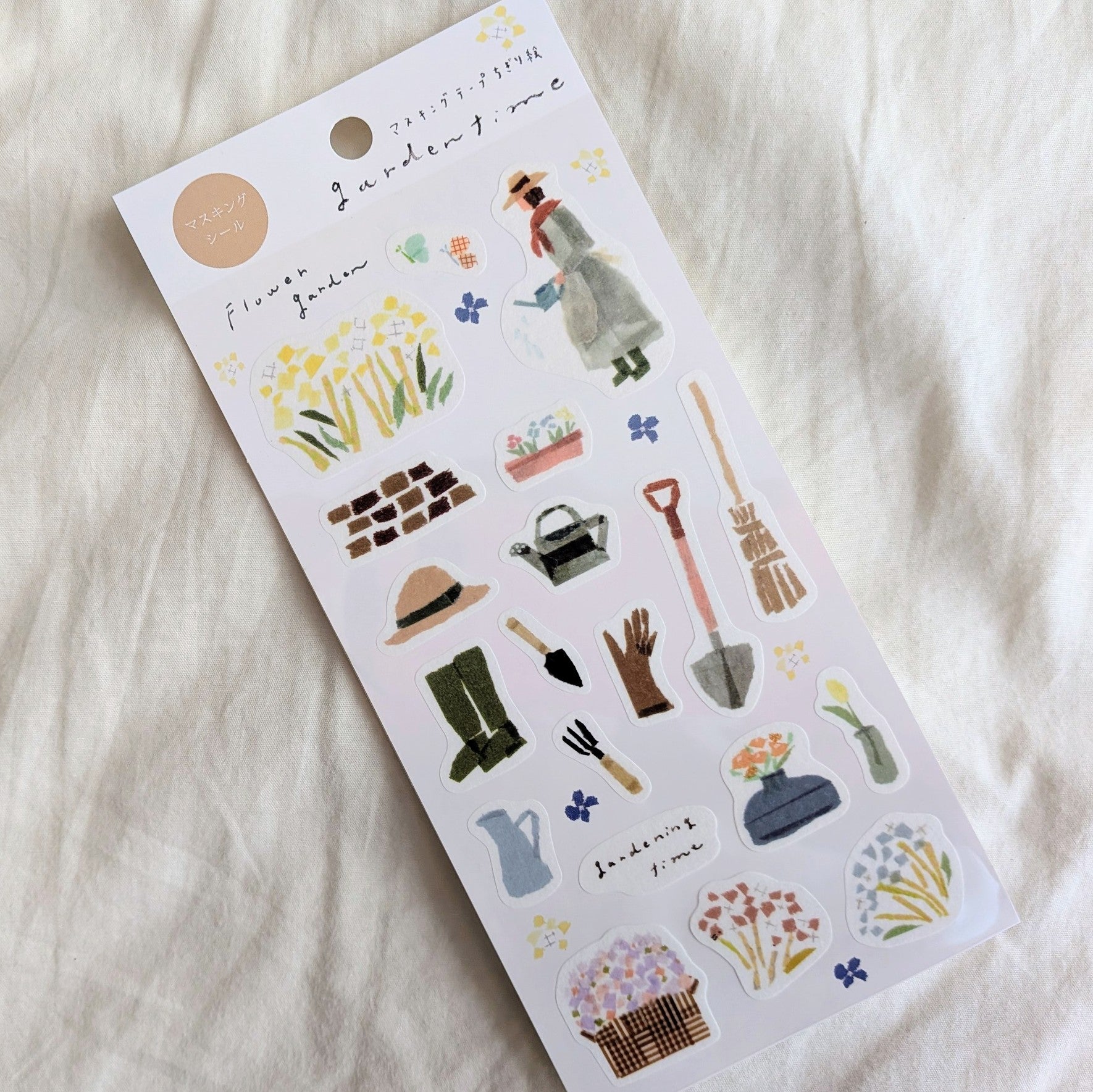 Masking Sticker 'Gardentime' designed by popular Japanese illustrator Miki Tamura, who designs illustrations by tearing off washi tape.