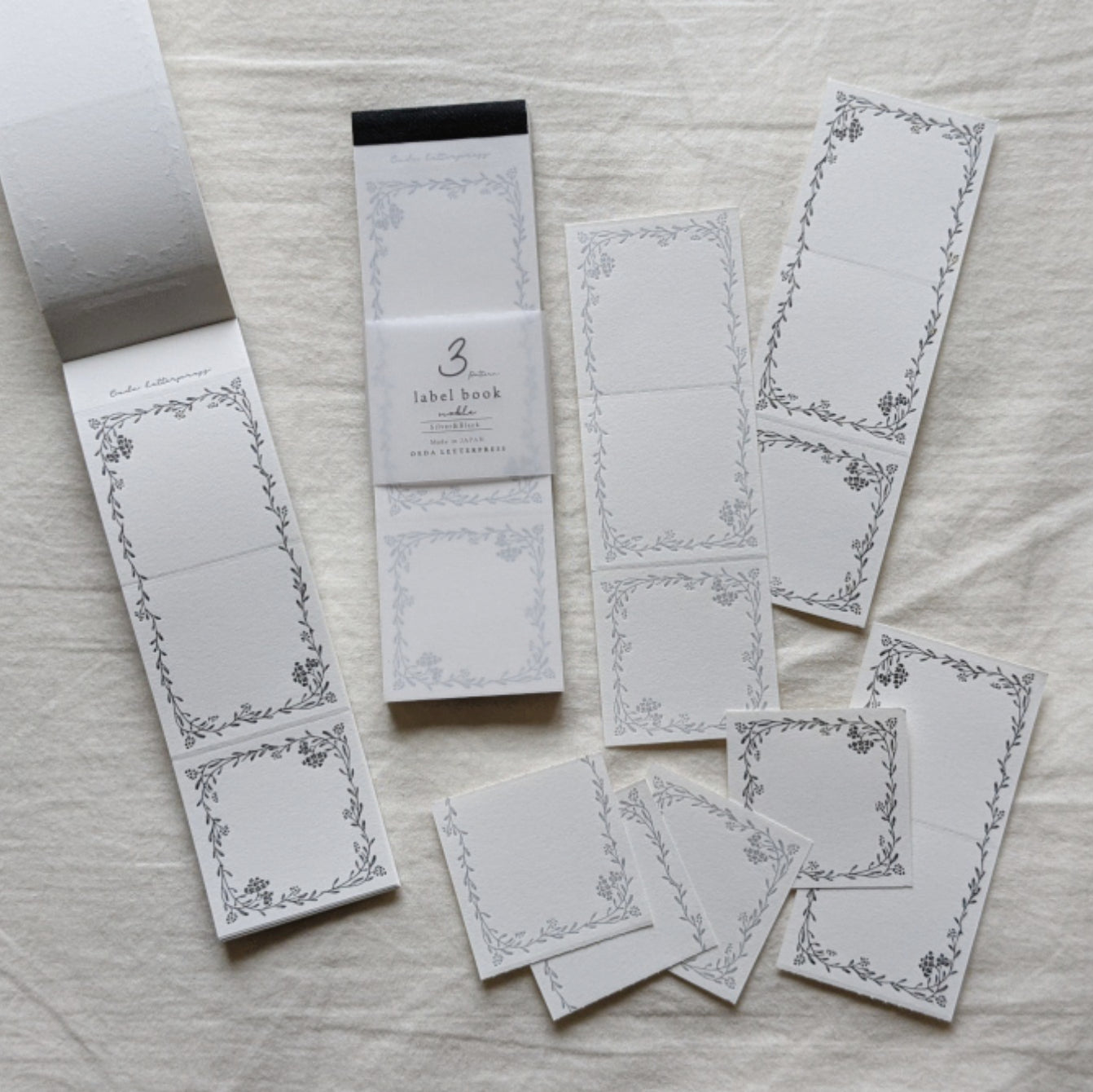 These are label notebooks, letterpress printed in a floral pattern by a printing engineer.