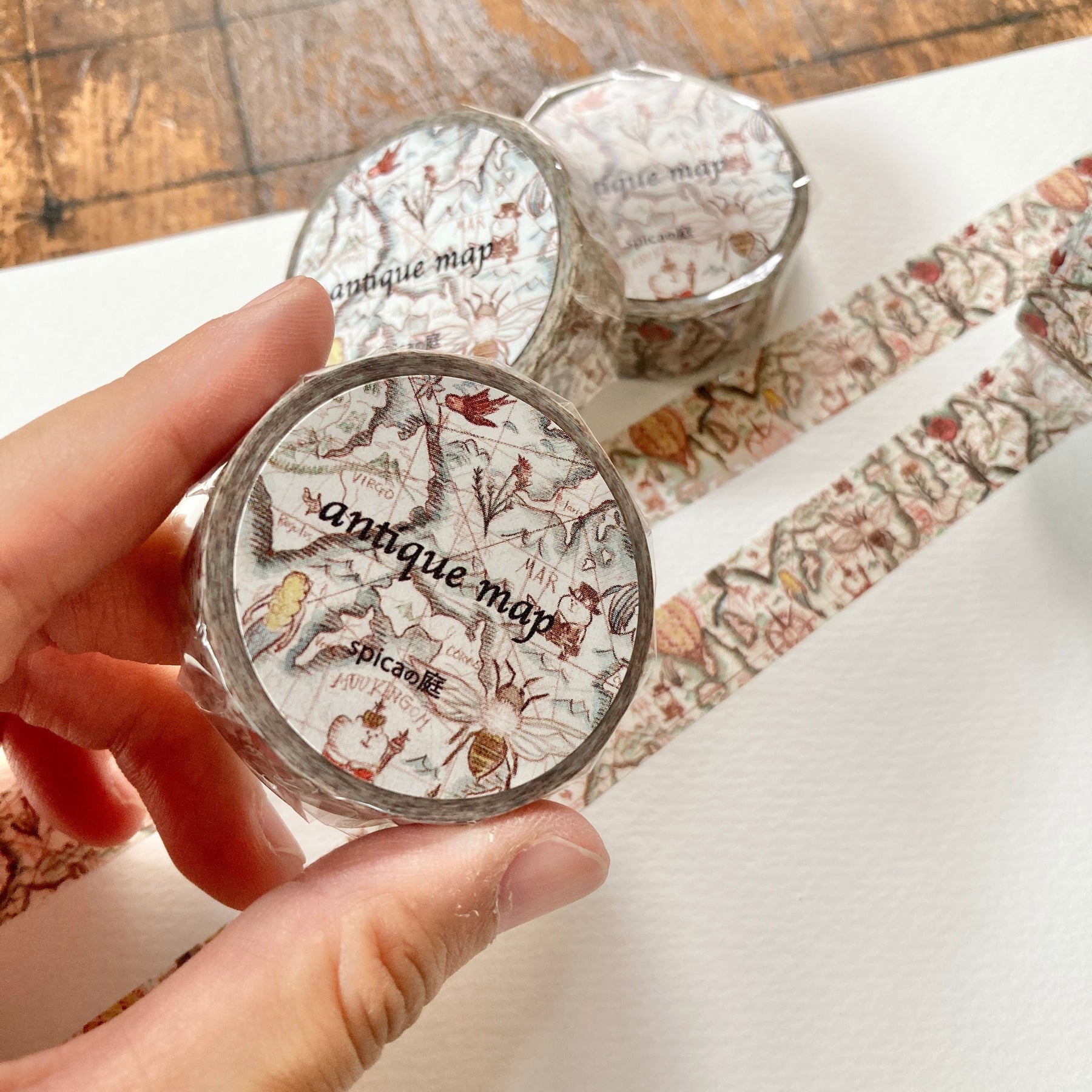 This washi tape "antiquemap" is produced by spica garden, a popular japanese manufacturer of stationery such as washi tapes and message cards.