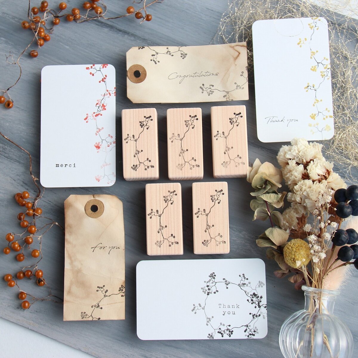 色々なスタンプと組み合わせて、無地の封筒やラッピングペーパーやメッセージカードなどを華やかにアレンジしてみてください!