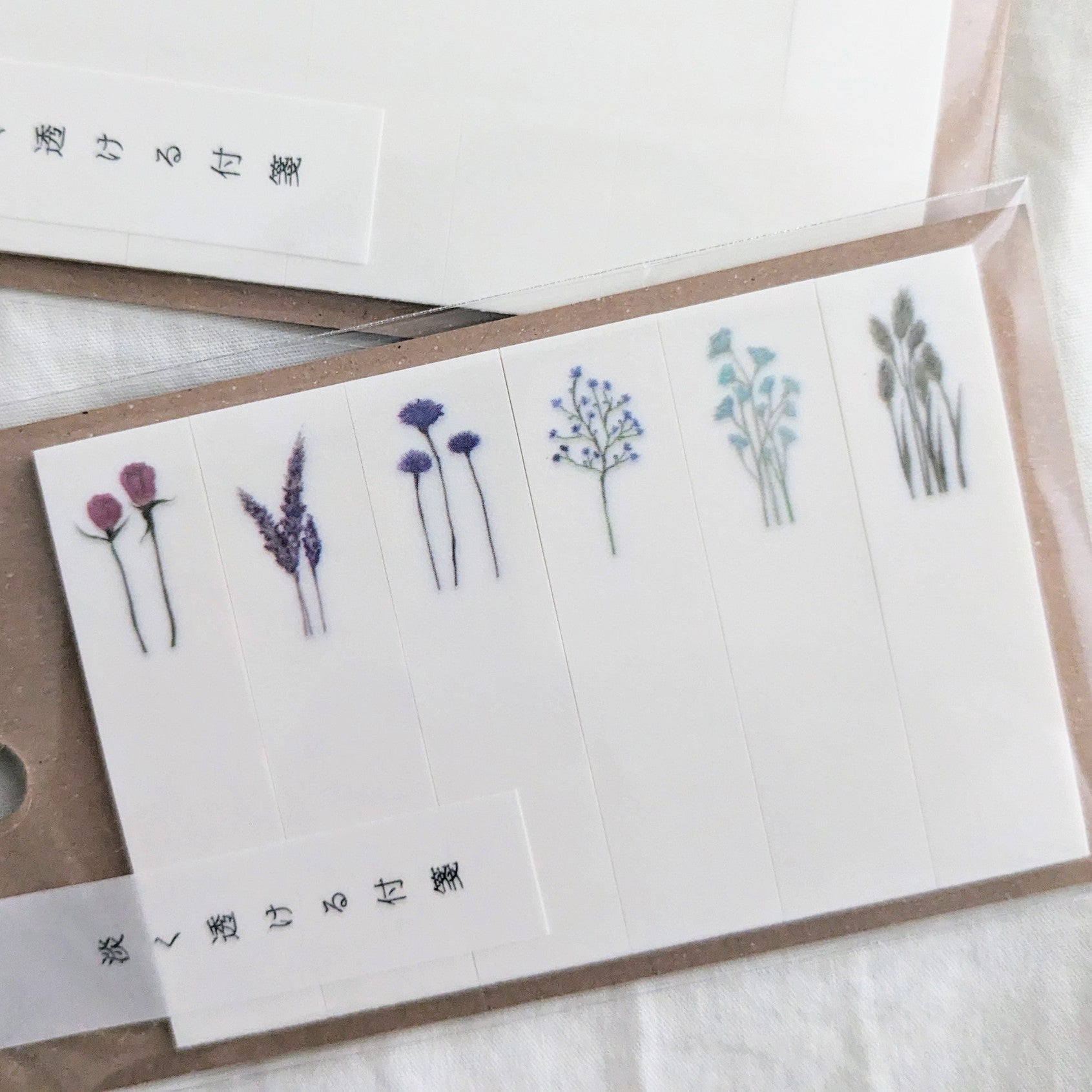 This is a pale translucent sticky notes "dried flowers Marker" made by kamidea, a popular Japanese stationery brand focusing on memos and sticky notes.