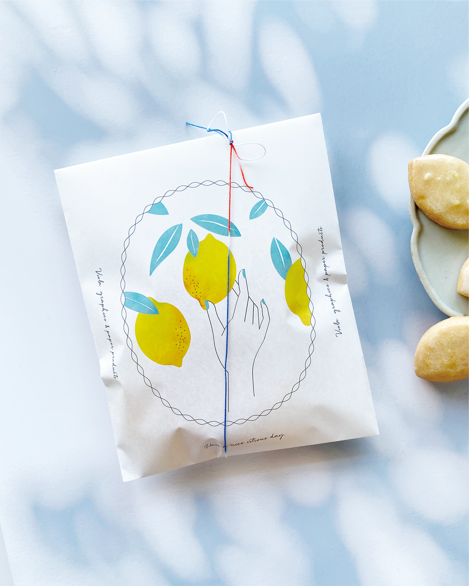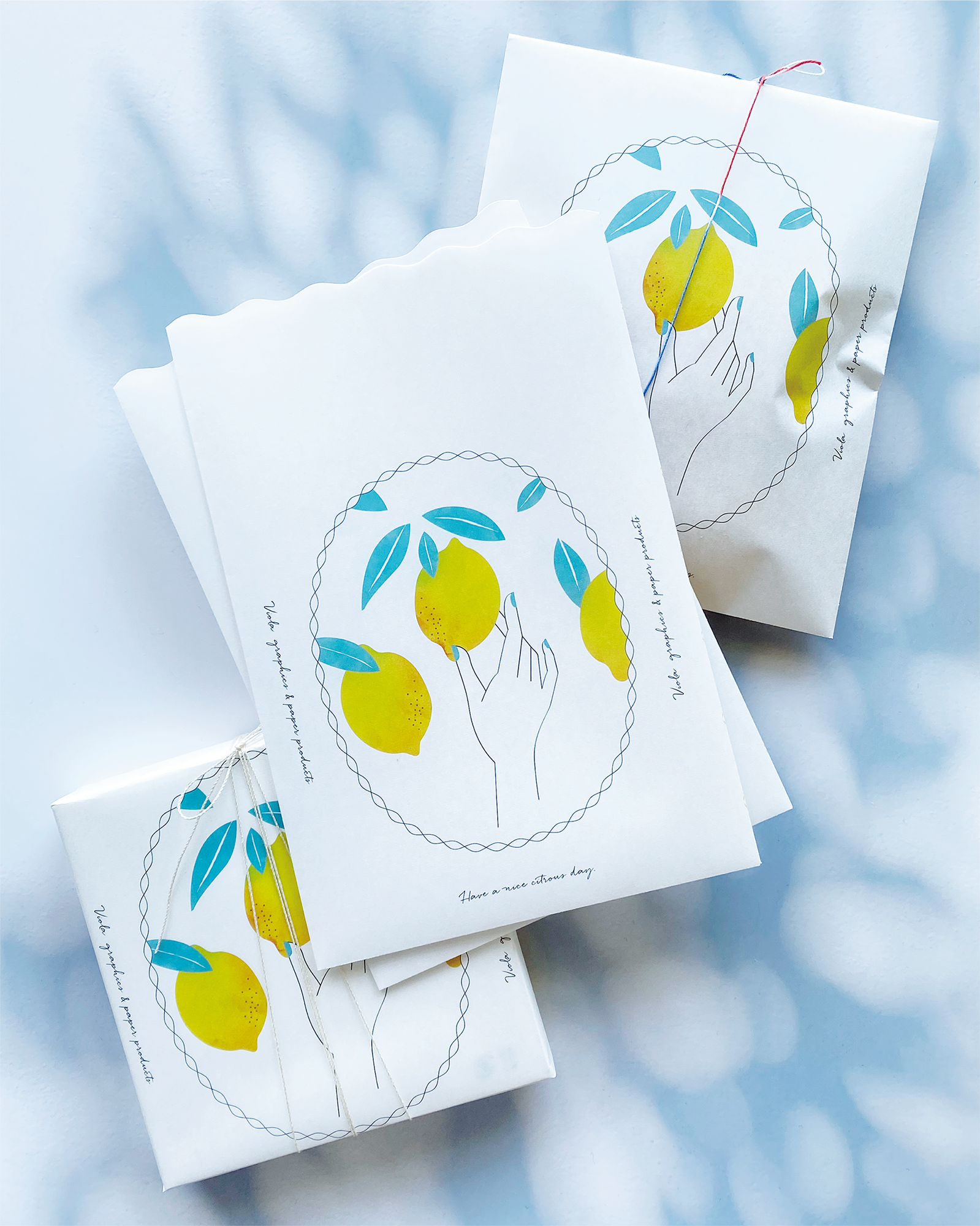 This is a very refreshing paper bag with a design of the moment when a lemon is ripped off.