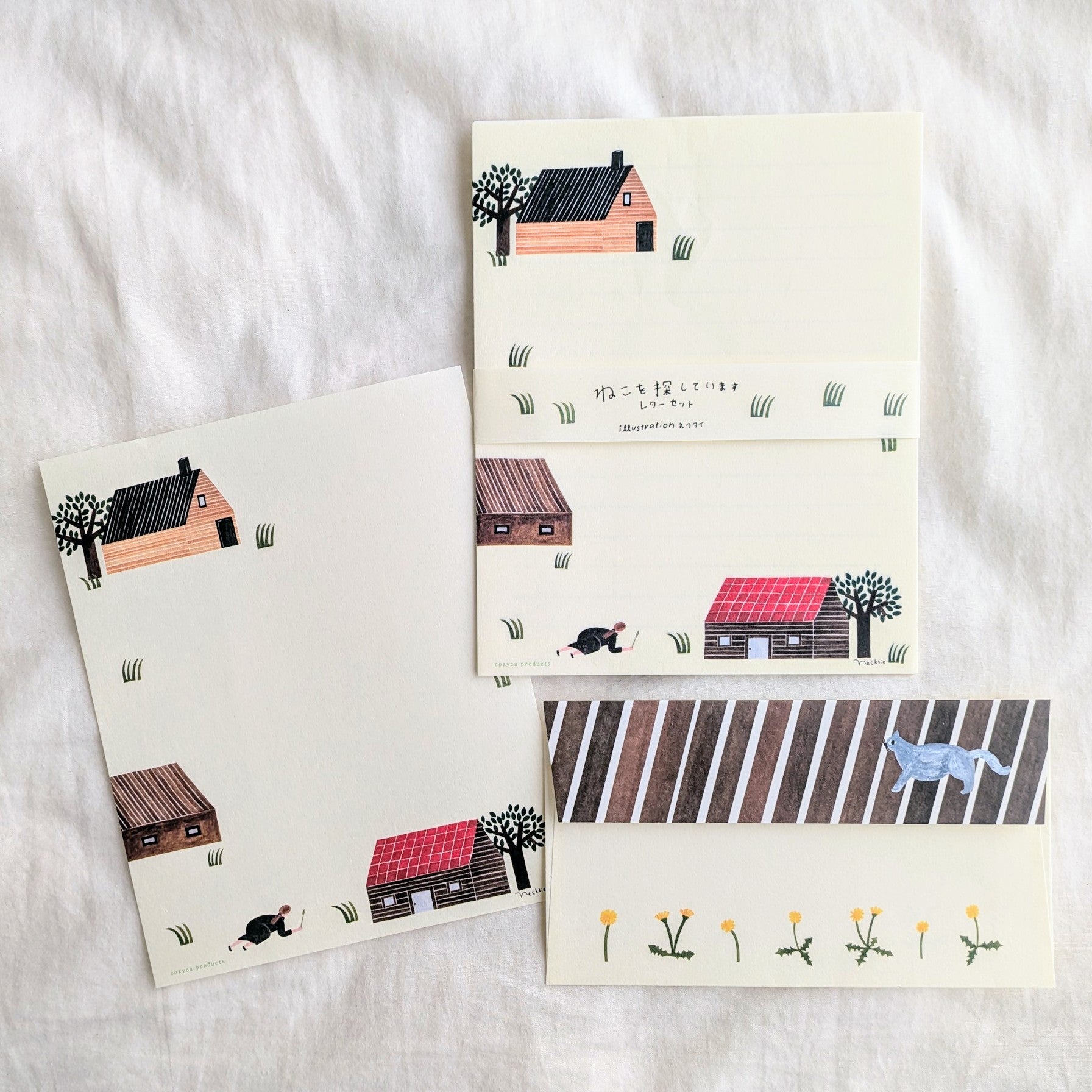 人気のイラストレーターユニット ネクタイさんがデザインしている「ねこを探しています レターセット」です。