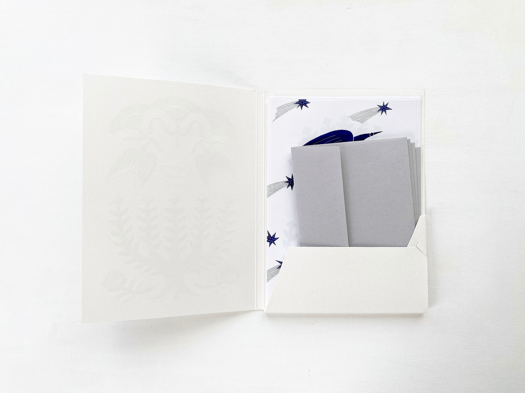 The cardboard folder that hold the letterheads and envelopes are also very beautiful.